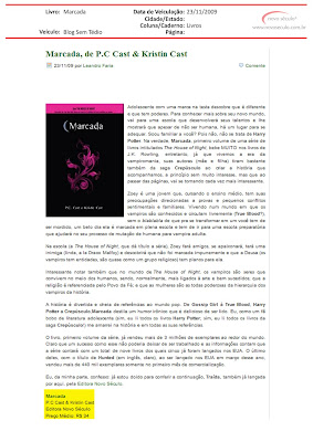 os livros da série House of Night recebram destaque no Blog Suplemento Cultural.